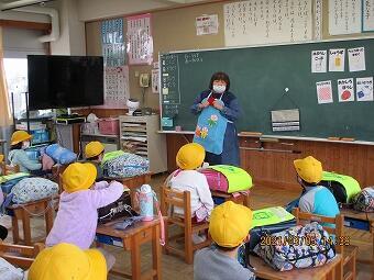 1年生の教室で、本校職員がエプロシアターを行いました。どの子もしばし物語の世界に浸っていました。