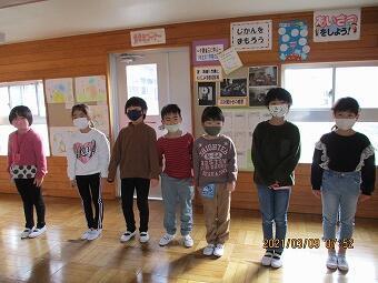 令和2年度修了式を執り行いました。放送で各教室をつなぎ、代表児童が今年度を振り返って頑張ったことを発表しました。その後、みんなで1年間の出来事をまとめたプレゼンを視聴しました。今年度も保護者の皆様、地域の皆様に大変お世話になりました。子供たちはまっすぐ成長しました。ありがとうございました。来年度もどうぞよろしくお願いします。