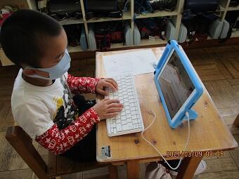 3月10日(水)2年生朝の学習 ローマ字タイピング