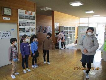 2年生があいさつ運動を行いました。どの子も心を込めてあいさつを行っていました。