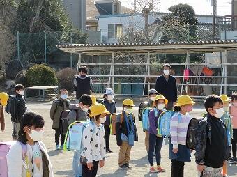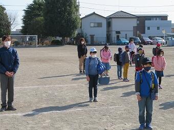 1年生が毎日あいさつ運動をしています。今日も元気に一生懸命あいさつ運動を行っていました。