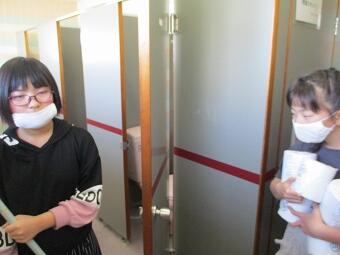 5年生が卒業式の会場設営を行いました。卒業生への感謝の心を込めながら、どの子も進んで働いていました。