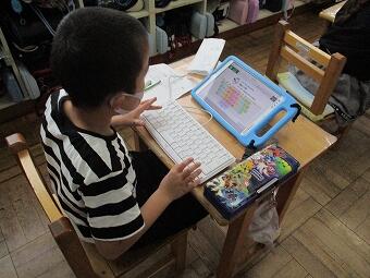 2年生が毎朝、朝の学習でタブレットを活用し、ローマ字を練習しています。どの子もずいぶん上達したようです。