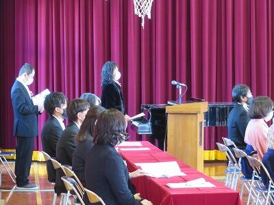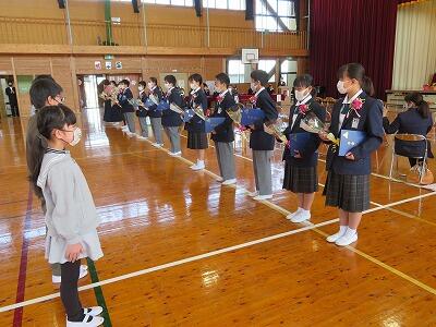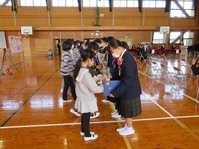 卒業式を挙行しました。今年度も残念ながら来賓の皆様をお招きすることはできませんでしたが、PTA役員様、保護者様の臨席をいただき、また5年生は参列し、温かな式となりました。卒業生全員、厳かななかにもしっかりとした態度で臨み、小学校生活最後の日を有終の美で飾りました。