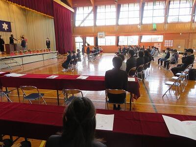 令和2年度修了式を執り行いました。放送で各教室をつなぎ、代表児童が今年度を振り返って頑張ったことを発表しました。その後、みんなで1年間の出来事をまとめたプレゼンを視聴しました。今年度も保護者の皆様、地域の皆様に大変お世話になりました。子供たちはまっすぐ成長しました。ありがとうございました。来年度もどうぞよろしくお願いします。