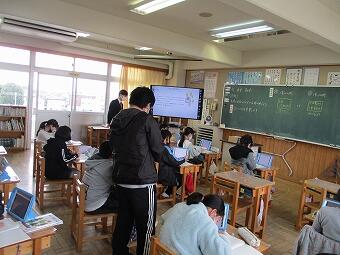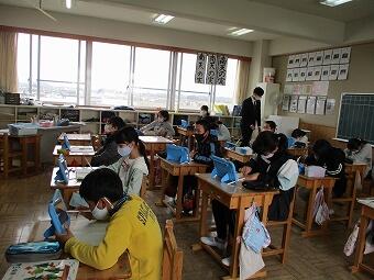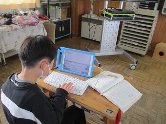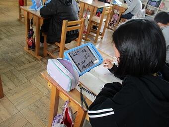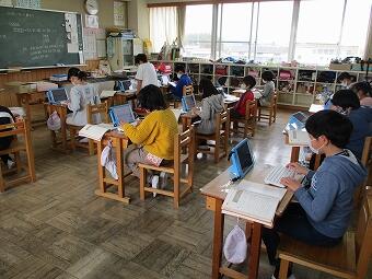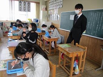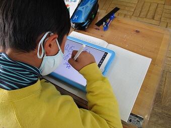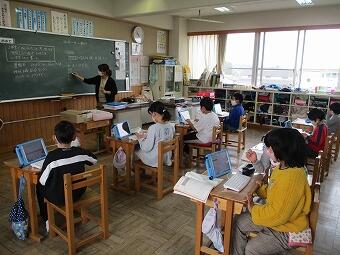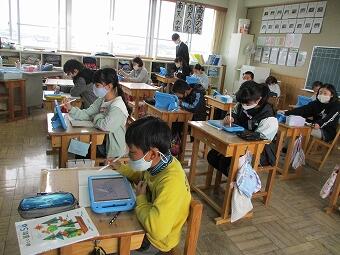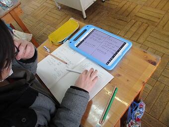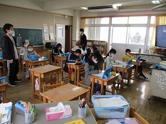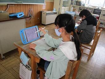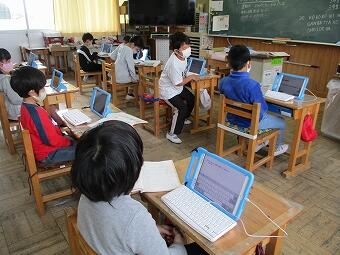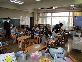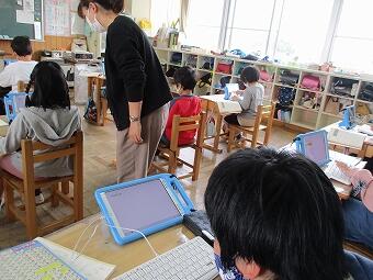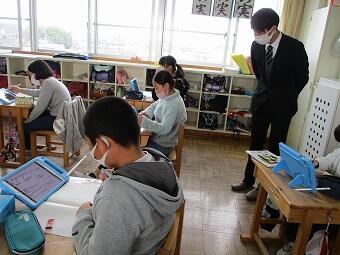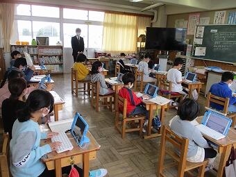3年生と5年生がタブレットを活用した授業を行いました。3年生はローマ字打ちをしながら、自分自身で考えた文章を打つ学習を、5年生は算数の応用問題をタブレットを活用しながら考える学習を行いました。大学生からタブレットを活用した授業を参観したいとのリクエストがあり行いました。