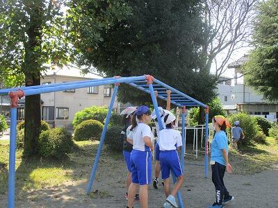 風が爽やかになり、外での活動が気持ち良い季節です。ちょっと写真の空の色は不穏ですが、子どもたちは楽しそうです。