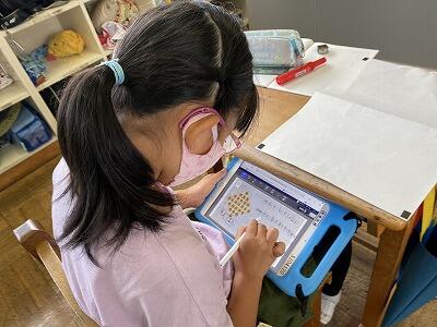 今日の授業もタブレットが活躍していました。2年生もタブレットの使い方がうまくなって、自分で書いたものを写真を取って先生に提出していました。たのもしいです。