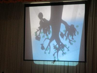 千葉省三記念行事で図書委員会の朗読『おねぼうなワンワン(『ワンワンものがたり』から)』、KLVさんの新作影絵『空へ落っこちたはなし』が行われました。とても素敵な発表でまたひとつ千葉文学の勉強ができました。