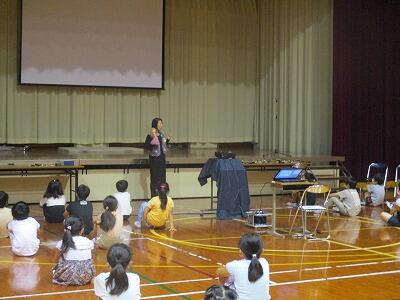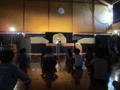 人形劇団「まざあぐうす」さんが来校し、1,2,3年生にスライド絵本と人形劇を見せてくださいました。児童も先生も、セットに演技に魅了されたようです。手遊びも楽しかったみたいです。ありがとうございました。また、来てください!