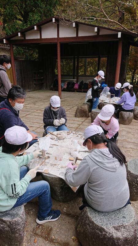化石の原石から化石を割出します。考古学者になった気分ですね。