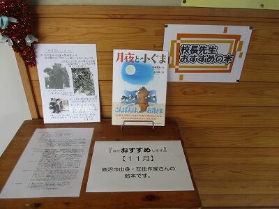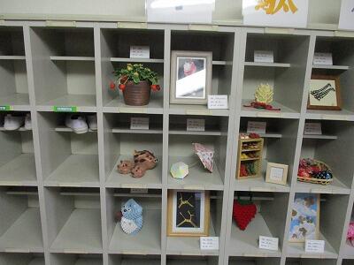 今年は、1年生の入学が2名だったので下駄箱がたくさん余ってしまいました。そこで、下駄箱を展示場にして展覧会を開こうと地域に募集したところ、たくさんの作品をご応募いただきました。ありがとうございました。下駄箱の規格サイズに合わせないといけないので出品が難しかったかもしれませんが、逆に可愛らしい展示になりました。子どもたちと見させていただきます。12月24日までの展示です。