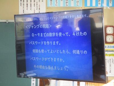 6年生の算数「並べ方と組み合わせ方」の研究授業がありました。意欲を喚起させるための導入の工夫、主体的に課題解決に取り組み学び合いを深めるためのジャンプの課題の工夫がテーマでした。「先生のコマッタを助けて!」という演技に始まった授業は楽しく和やかに展開し、ジャンプの課題では「負けたくない」という声も漏れ、粘り強く課題解決に取り組む姿が見られました。学力向上コーディネーターの渡辺英明先生、上都賀教育事務所の田邉香先生、ご指導ありがとうございました。