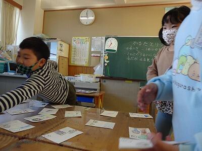 最近は2年生が自分たちで作ったカルタ取りに興じていました。今日は1年生を交えてのカルタ取り大会。