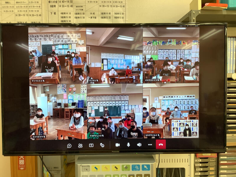 終業式、表彰式、各学年代表児童の作文発表はオンラインで行いました。