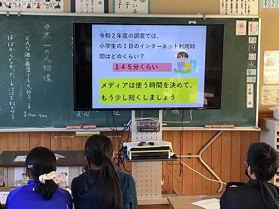 健康委員会さんが情報メディア、ゲーム機に関する調査をして、使い方について注意喚起を行ってくれました。利用時間を決めて使いすぎにならないようにしたり、使いながら目を休ませる習慣を身につけることが大切ですね。