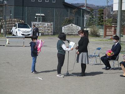 一人一人の転退職される先生から、楡木小学校の思い出が語られ、子ども達へのメッセージが送られました。児童代表児童から、一人一人の先生方に立派にお別れの言葉を述べ、感謝の気持ちを伝えました。