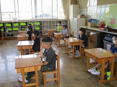 地震から火災が起こった設定で避難訓練を行いました。今回は1年生が入学して初めてということもあって避難経路の確認が一番の目的でしたが、全員避難まで1分57秒。指示に従って素早く避難することができました。よかったと思います。