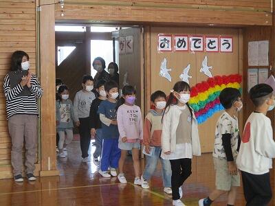 上級生が、各学年それぞれ、一年生のために一年生が喜んでくれそうな企画・出し物を考えて「一年生を迎える会」を開いてくれました。各学年工夫して楽しい迎える会になりました。一年生も笑顔でとても楽しそうでした。ありがとうございました。