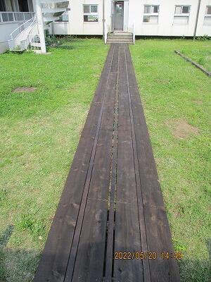 木道の隙間が埋まり、安心して歩行できるようになりました。防腐剤も再塗装していただきました。庭の緑に焦げ茶色の木道がとても素敵です。有効に活用させていただきます。