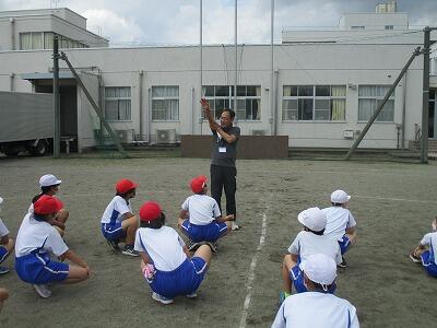 昨年に引き続き体力向上のために、県からの派遣でエキスパートティーチャーが来てくださいました。今日は投力の練習。楽しく、とてもわかり易く教えていただき、子どもたちはとてもうれしかったようです。記録が伸びるように休み時間などを使って、コツコツがんばっていきましょう。