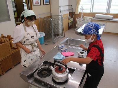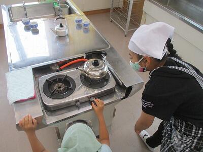 お湯を沸かしてお茶の入れ方を習いました。ぜひ、忘れないうちに、家でお家の方に入れて飲んでもらってください。