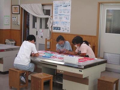 お家の方と一緒に「小物づくり」を楽しみました。小瓶の中に様々なツールを詰め込んで小さな世界ができました。夏らしいステキな作品ができましたね。