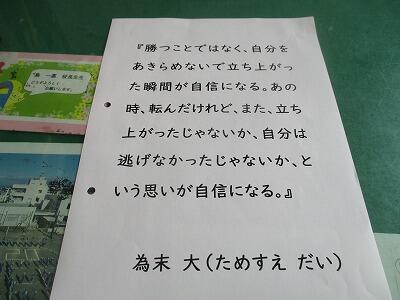 「〇〇ができるようになった」「できなかったことが悔しくてあきらめないで頑張ったらできるようにんった」「あきらめずに頑張って目標を達成することができた」「人のために頑張れた」などよいことをたくさん発表してくれました。みなさん、あきらめないで頑張ったんだなあ、と感心しました。