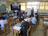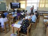 3,4年生の算数で、講師に市田繁子さんをお迎えして「そろばん」の単元を教えていただきました。そろばんに触ったことがない児童がほとんどなので、試行錯誤する場面もありましたが、市田さんにアドバイスしていただきながら、頑張っていました。「楽しかった!」という声が上がっていました。