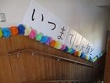 先日の評議員会で、12月の書道パフォーマンスで書家に書いていただいた作品を展示したいが、職員ではどうしようもないのでどうしたものか、と相談させていただいたところ、地元の工務店さんをご紹介いただき、体育館に取り付けていただきました。併せて児童の作品も展示しました。かっこよく展示していただき、作品も体育館も喜んでいると思います。