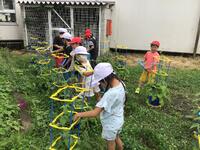 竜巻が南の方角からやってきて、学校を通過、通過時に学校の放送器具が壊れ、転んで怪我をする子どもが出る、という設定で避難訓練を行いました。