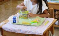 そのため、給食のメニューは避難所でも出そうなロールパン、牛乳、コーンポタージュ、ゼリー、バナナでした。