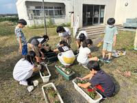 環境委員さんが花の苗植えをして玄関に飾ってくれました。