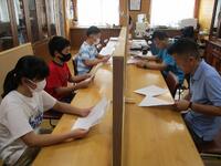 校庭の草刈りと、校舎内の清掃、窓拭き等を行っていただきました。