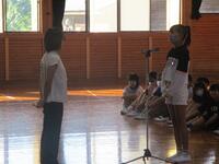 これまで、教室でそれぞれの学年ごとに練習していましたが、業間の休み時間に体育館に集まっての練習を始めました。