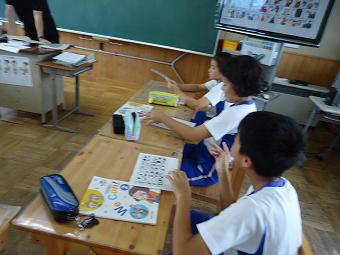 6年生が外国語の学習をしました。アルファベットの発音を復習した後、ALTのネイティブな発音を聞きながら、スペルを当てる学習です。悩んでいる発音の場所もジョリーフォニックスの動作をしてもらうことで、「わかった」「なるほど」といったつぶやきとともに、スペルをワークシートに書き込んでいました。