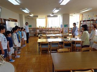 業間の時間にKLVさんと図書委員が顔合わせを行いました。KLVの皆さんからは、本の素晴らしさや、鹿沼市立図書館が発行している図書通帳の活用についてのお話をいただきました。図書委員は、「下学年が本を探していたらやさしく声をかけたい。」「本の貸し出しや返却の仕事を頑張りたい。」といった一人一人の抱負を述べ、それぞれが作成した掲示物「おすすめの一冊」を見てもらいました。KLVの皆さん、これからも図書委員をはじめ、子ども達への支援をよろしくお願いいたします。