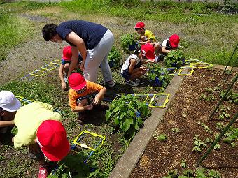 1年生が生活科の時間に、アサガオの支柱立てを行いました。6月1日から本格的に学校生活が始まった1年生、ずいぶん学校にも慣れ、毎日、楽しそうに学習しています。