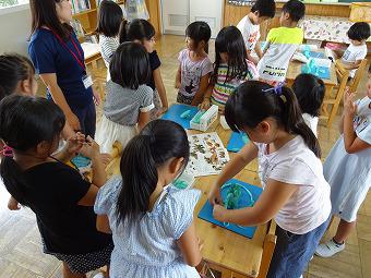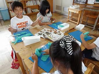 1年生が図工の時間に「のばしてぺったん」の学習をしました。粘土を使って、自由に発想を広げ、作品を作る活動です。どの子も、目を輝かせながら、一生懸命取り組んでいました。