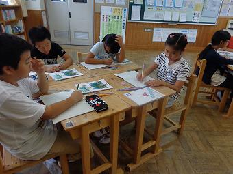 4年生の算数で研究授業が行われました。研究授業とは、先生方が授業を見せ合い、みんなで授業力を向上させる取組です。今回は宇都宮大学の教授にもお越しいただき、ご指導をいただきました。授業のねらいは「言葉や図、式を使って問題場面を考えよう」です。最初の学習問題が提示されると、どの子も早速取り組み始め、その後、グループでも話し合い、答えを出しました。代表の子が答えを黒板に書き、全員がその答えでいいとうなずきました。そこで先生が、もう一度問題の読み直しを指示すると、「あ-!」という声が一斉に上がりました。みんなが自信をもって解いた答えが、実は違っていることに気づいた瞬間でした。では、どのように考え直したらよいかを、またグループで話し合いました。続いて違う問題にも挑戦しました。今度は、正解にたどり着くグループも現れました。学習の振り返りでは、「図を使って順番に考えたら簡単に解けたので、これからは図や式、言葉で考えていきたいと思います。」、「またグループで、考える問題をやりたいです。」といった記述がありました。放課後、授業研究会が開かれ、本日の授業について、みんなで話し合い、良かった点やこれからにつながる課題などを確認しました。