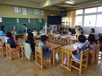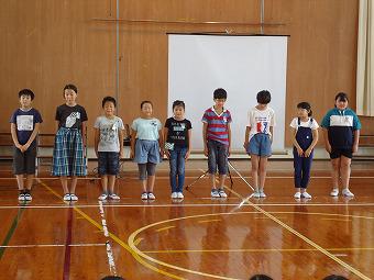 業間の時間、生活委員会の発表が行われました。日頃行っている、朝の国旗揚げや放送などの仕事内容の発表をした後、この2学期重点的に取り組んでいる「相手の目を見て、大きな声で、あいさつしよう」について、悪いあいさつの例、よいあいさつの例を、ロールプレイングで生活委員が行いました。続いて、表彰集会を行いました。スポーツ少年団の大会、読破賞の表彰などを行いました。このような活動を通して、子ども達は自尊感情や自己有用感、いわゆるハッピーの種を育てています。