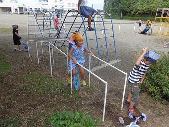昼休み。今日は3年生が社会科見学で不在ですが、みんな思い思いの遊びを楽しんでいます。6年生の女子が全員でサッカーゴールを守っています。ドッチビー、野球を楽しんでいます。逆上がり補助器を使って、逆上がりに初めて成功した子がいます。見ていた先生や友達とハイタッチしてとても嬉しそうです。新しい一輪車にみんな夢中です。チャイムが鳴るとみんな一斉に昇降口に向かって走りだしました。