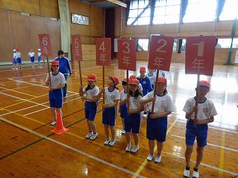 10連休も無事終わり、子供たちの元気な声が学校に戻ってきました。今日から運動会特別日課となり、業間に、初練習が行われました。4~6年生が開会式の練習をしました。どの子も真剣な表情でそれぞれの役割に打ち込んでいました。25日の本番が今から楽しみです。