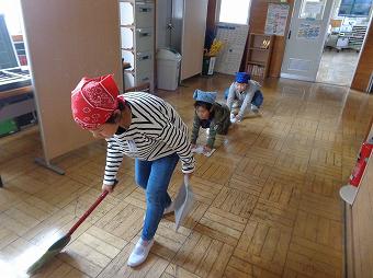 1年生が今日から清掃に参加しました。1年生は、迎えに来たなかよし班班長に清掃場所まで連れていってもらい、優しく清掃のやり方を教えてもらいました。どの1年生も、一生懸命清掃に取り組んでいました。