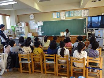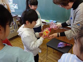 KLVの方が2名来校し朝の学習の時間に、1・2年生と5・6年生に読み聞かせをしてくださいました。1・2年生には、「まくらのせんにん」と「おおきくなるってことは」の2冊の絵本を読んでくださいました。読み終わってから、今日が今年最後、ということで、素敵な手製のしおりをプレゼントしていただきました。子ども達は思いがけない贈り物に大喜びでした。