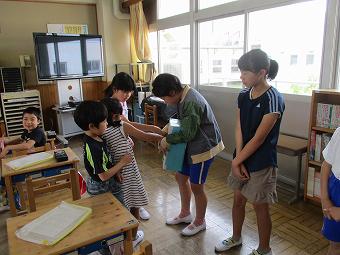 環境委員が、緑の募金を始めました。朝の学習前に各教室を回って募金を集めます。このような活動を通して子供たちは自己有用感を心に育てています。