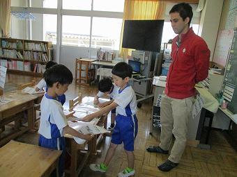 1年生が初めての英語の学習を行いました。ALTの先生と一緒にアルファベットの発音の練習をしたり、あいさつをお互いに言い合ったり。とても楽しく英語を学んでいました。