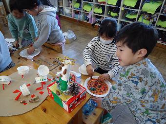1年生が生活科で「秋のおもちゃ」で遊びました。友達の作ったおもちゃで遊んだり、自分のおもちゃに改良を加えたり、どの子も夢中になって、活動に取り組んでいました。