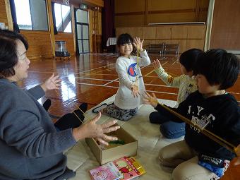 1年生が生活科で昔の遊び体験を行いました。自分のおじいさん、おばあさん、地域の方にボランティアティーチャーとなっていただき、昔の遊びを教えていただきました。コマ回し、羽根つき、お手玉、あやとり、おはじき。今はもうなかなか遊ぶことのない昔の遊びの方法を教えていただきました。子供たちは、いつの時代も遊びが大好き。おじいさん、おばあさんと楽しく夢中になって遊んでいました。授業後は一緒に給食を食べるなど、世代を超えて楽しいひとときを過ごしました。ボランティアティーチャーになっていただいた方々、大変お世話になりました。