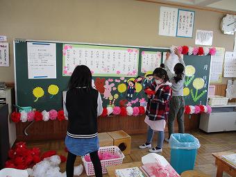 5,6年生が入学式の準備を行いました。どの子も、明日の入学式に向けて、一生懸命、仕事をしていました。どの子の表情にも、1年生を笑顔で迎える気持ちが溢れていました。